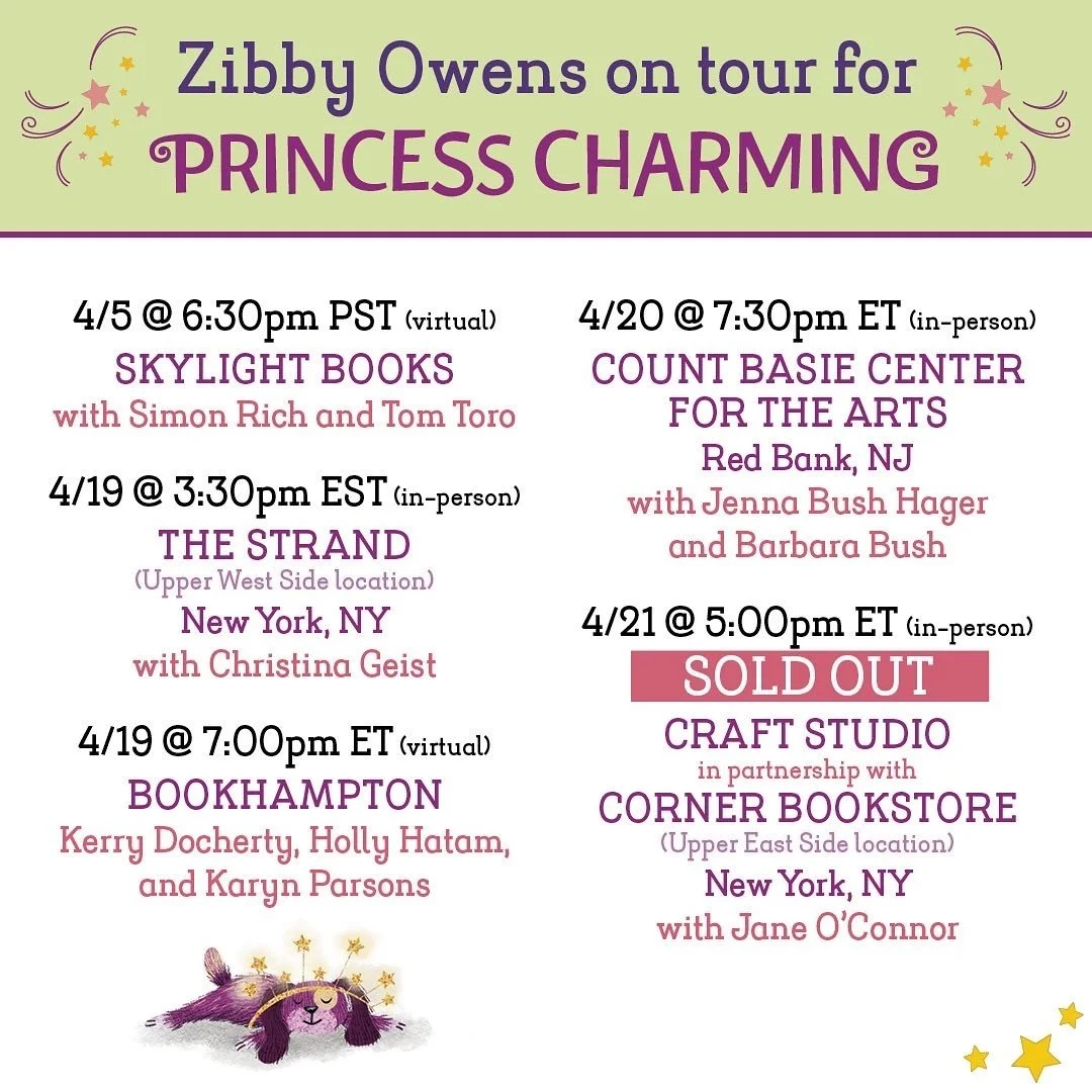 7/20/21: Publishers Weekly mentions Zibby’s new Book, Princess Charming, in their Spring 2022 Children’s Sneak Preview. Check it out here.